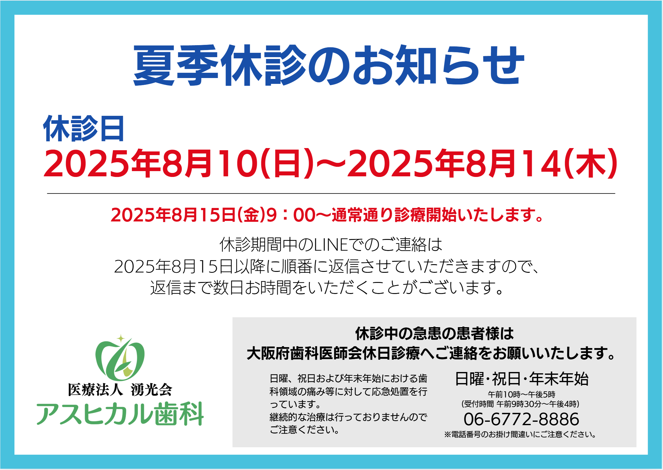 📅 休診期間:2025年8月10日(日)〜 2025年8月14日(木)