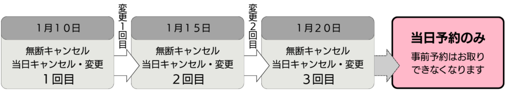 ◆ 無断キャンセル・当日キャンセル、変更が続く場合のご案内
