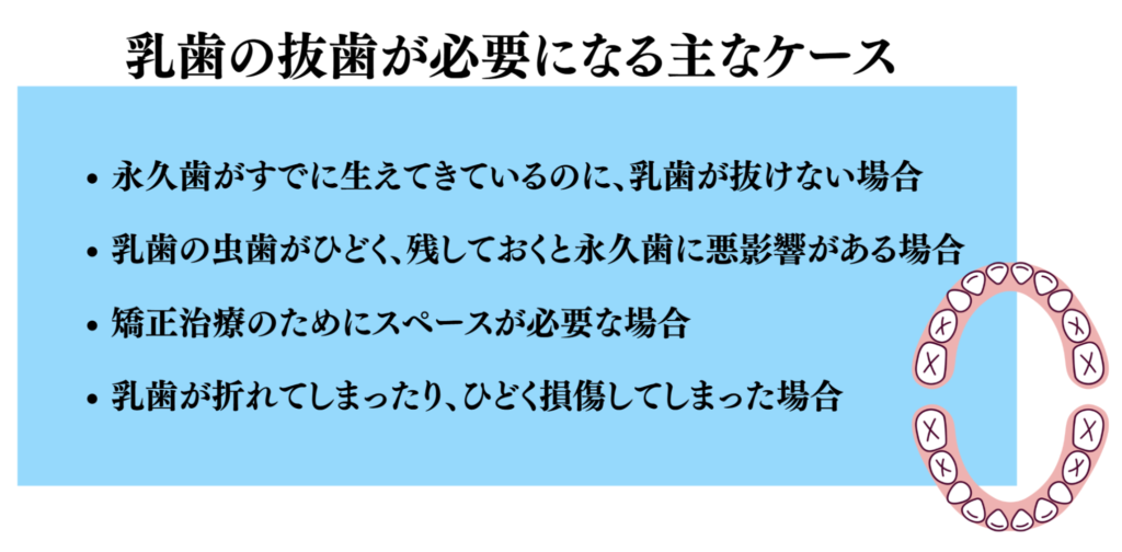 乳歯の抜歯が必要になる主なケース