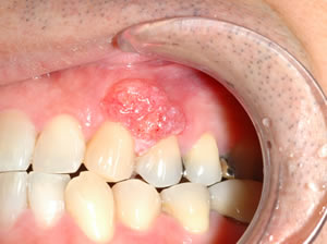 - 文字通り、歯ぐき(歯肉)にできます。特に、奥歯の歯ぐきや、下の前歯の裏側の歯ぐきにできやすい傾向があります。