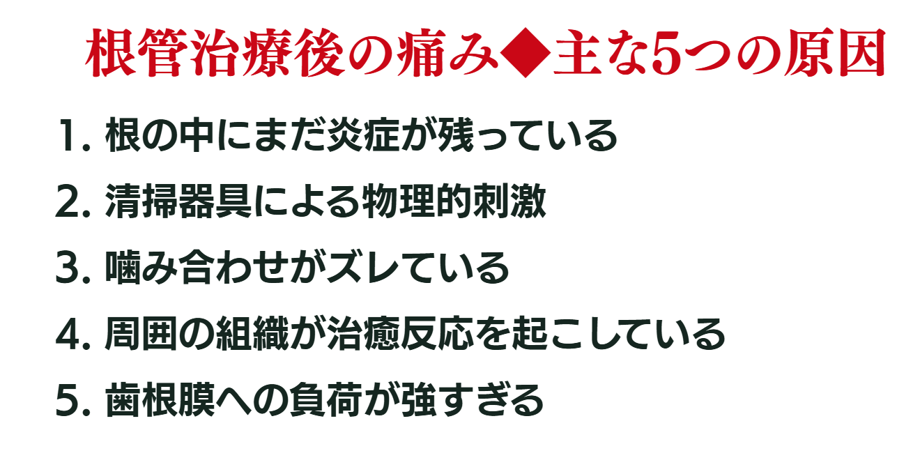 根管治療後の痛みは、一時的な反応としてよくあることです。