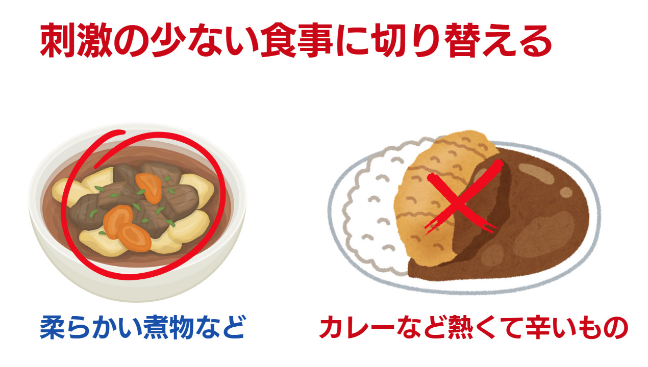 治療直後は、スープや柔らかい煮物など、刺激の少ない食事を選ぶことが回復を助けます。